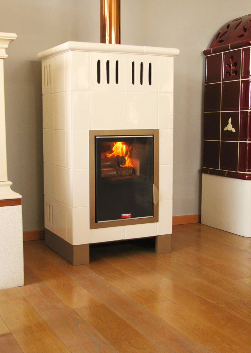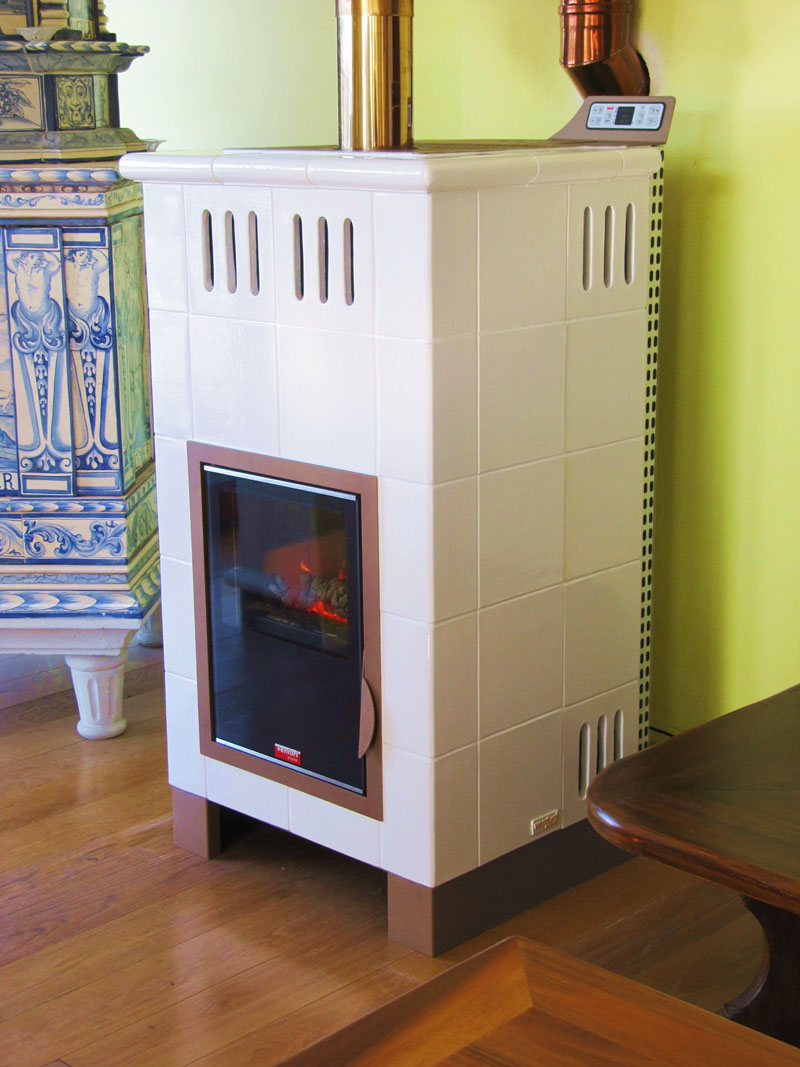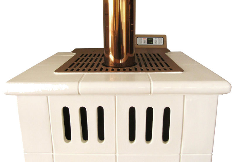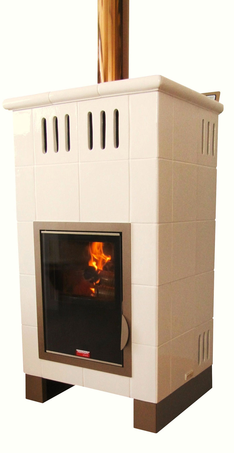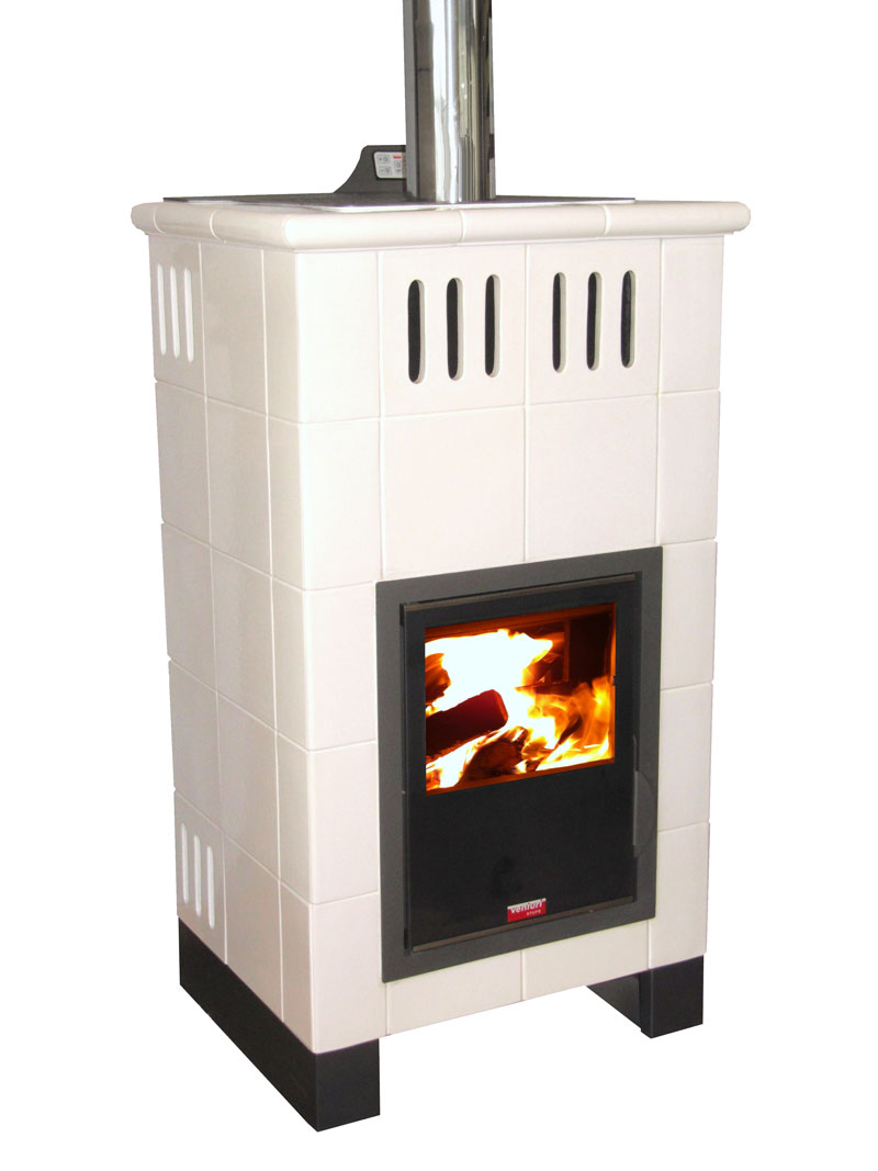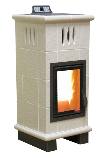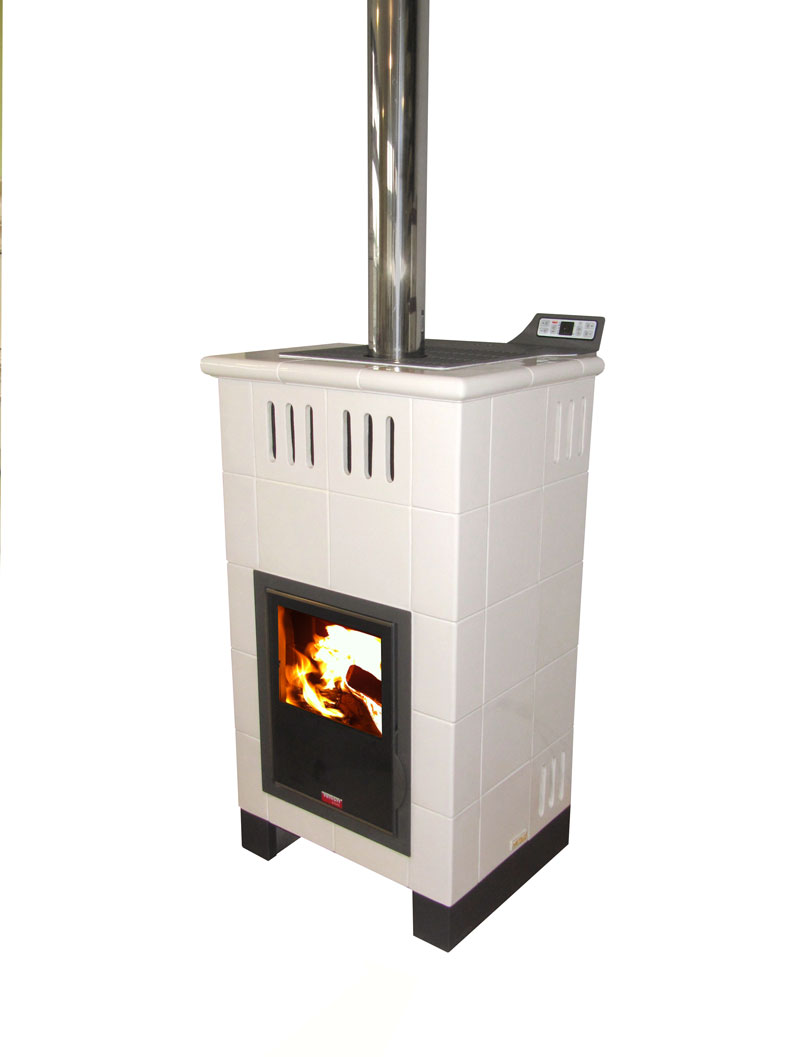 Stufa automatica a legna in maiolica, stesso comfort e praticita’ delle stufe a pellet con una spesa annua di combustibile pari a meta’. La stufa e’ brevettata a livello mondiale.