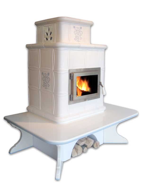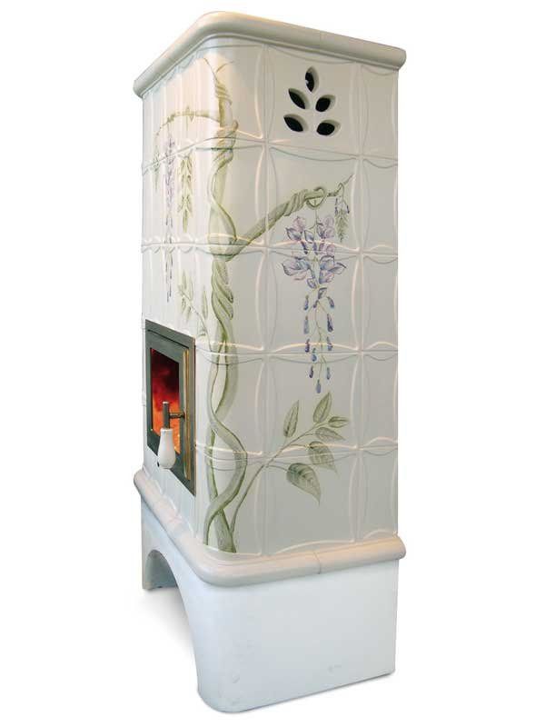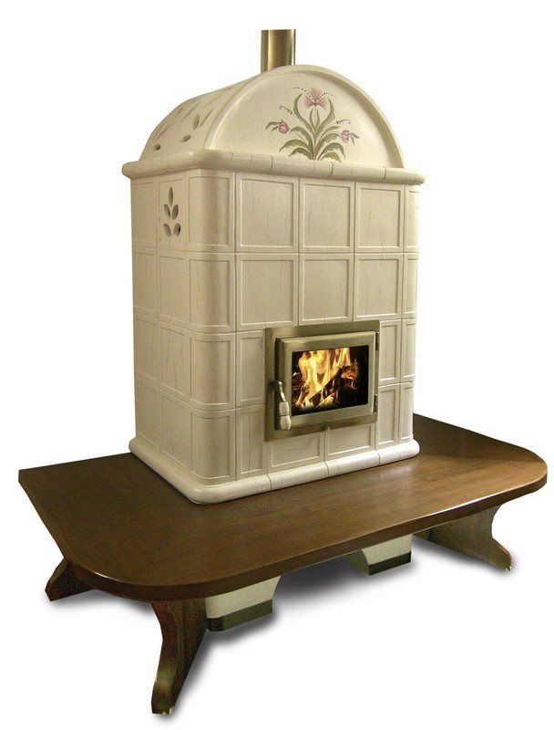 Mod. stufa a pellet in maiolica con panca