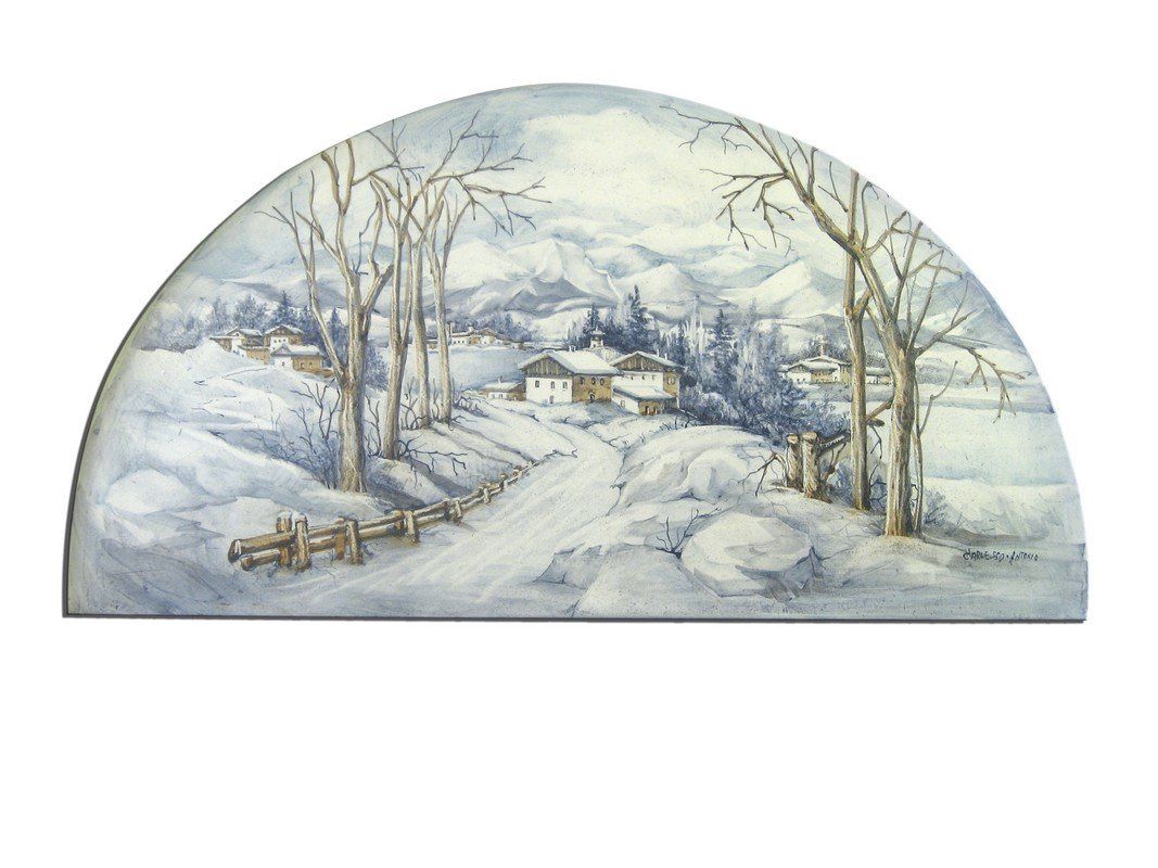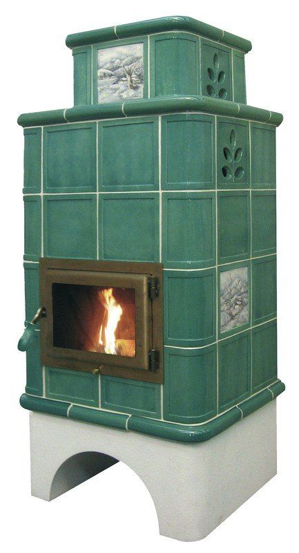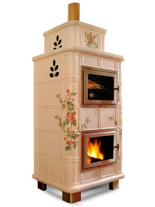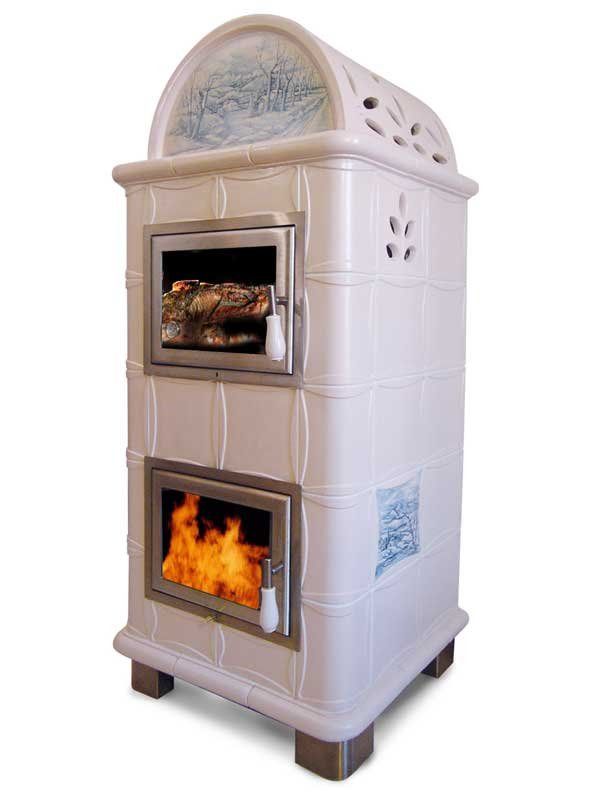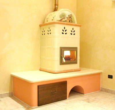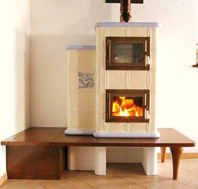 Stufa in maiolica con grande forno per la cottura del cibo.